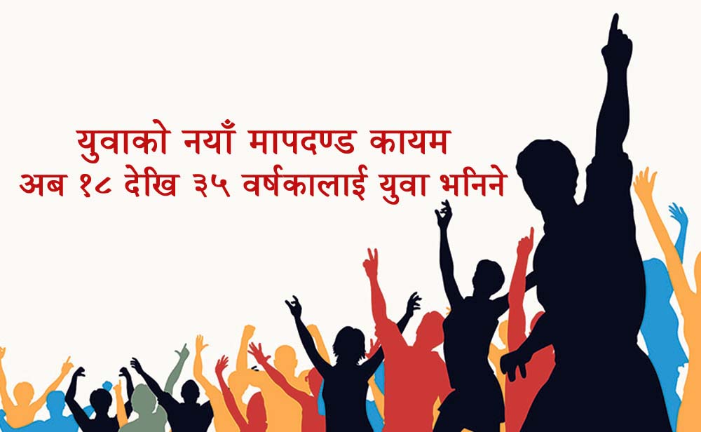 १२ भदौ, काठमाडौं । अब नेपालमा १८ देखि ३५ वर्ष उमेर समूहका लाई ‘युवा’ भनिने भएको छ । मन्त्रिपरिषद् बैठकबाट हालै स्वीकृत राष्ट्रिय युवा नीति-२०८२ मा नेपाली युवाको उमेर १८-३५ वर्ष कायम भएकाले अब सोही समूहकालाई ‘युवा’ भनिने छ ।