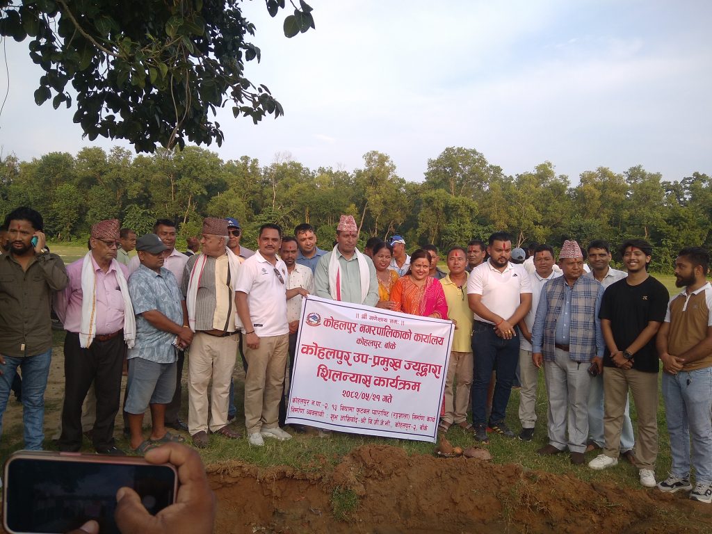 २२ भदौ, कोहलपुर । बाँकेको कोहलपुर नगरपालिका-२ स्थित १३ विघा मैदानमा अत्याधुनिक सुविधासहितको फुटबल रङ्गशालाको प्यारापिट निर्माण कार्य सुरु भएको छ ।
