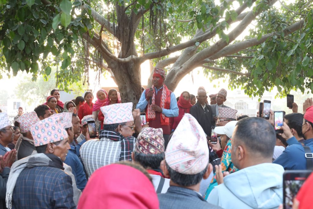 ९ फागुन, काेहलपुर । बाँके क्षेत्र नं. १ का प्रतिनिधि सभा सदस्य पदका उम्मेदवार नरेन्द्र पाण्डे (जेम्स) ले चुनावी अभियानलाई देउडा गीतमार्फत जनतामाझ प्रस्तुत गरेका छन्। कोहलपुर-१ मा आयोजित देउडा कार्यक्रममा उनले सांस्कृतिक शैलीमै भोट माग्दै आफ्ना प्रतिबद्धता सार्वजनिक गरेका हुन्।